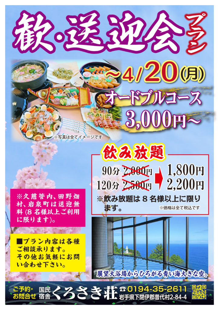 現在、令和8年4月20日(月)まで、歓送迎会プランのご予約を承っております。